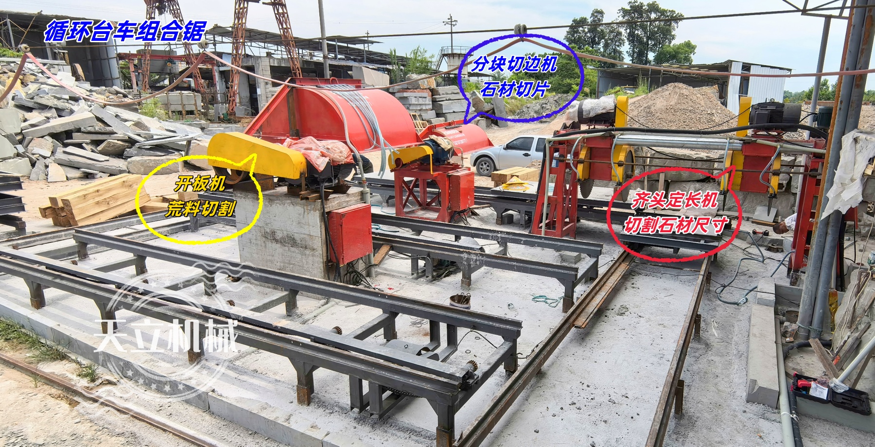 新循環(huán)臺(tái)車組合鋸由三臺(tái)設(shè)備組成(開(kāi)板機(jī)、齊頭定長(zhǎng)機(jī)、分塊切邊機(jī)),協(xié)同完成荒料開(kāi)板、定長(zhǎng)切割、分塊切邊全流程,構(gòu)建高效連貫的石材切割生產(chǎn)線。專為路沿石、條石、墓碑石等石材設(shè)計(jì),采用循環(huán)臺(tái)車與高強(qiáng)度鋸條技術(shù),實(shí)現(xiàn)連續(xù)精準(zhǔn)切割,提升生產(chǎn)效率30%以上。